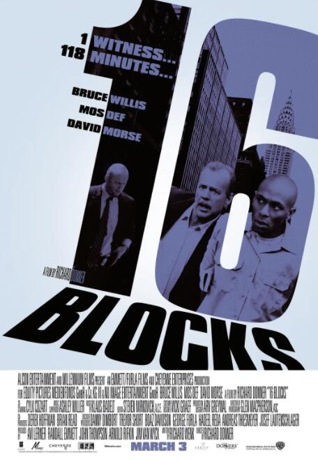 纽约平淡的一天,临近退休的老警探杰克•莫斯利(布鲁斯•威利斯 Bruce Willis 饰)却接到了一个吃力不讨好的任务:穿行16片街区,护送一名犯人上法庭作证。这本该是件极其轻松的事,从警局到法庭的车程只有15分钟,唯一的麻烦看上去也只是罪犯艾迪(茅斯•达夫 Mos Def 饰)滔滔不绝的废话而已。然而事实却远不止于此,一次针对艾迪的暗杀行动让杰克发现了幕后的真相:所谓的上庭作证不过是个幌子,真实的情况是以警局同僚、老朋友弗兰克(大卫•摩斯 David Morse饰)为首的一批腐败警察,借杰克护送艾迪的机会铲除污点证人。经历内心的挣扎后,杰克为了寻求心中的正义保护了艾迪,却成了纽约警局的众矢之的。16片街区的距离,从来也不曾如此漫长过…